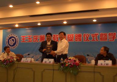教师出席了受聘仪式,副校长钱锋教授为王玉庆教授颁发了聘书和佩戴校徽。