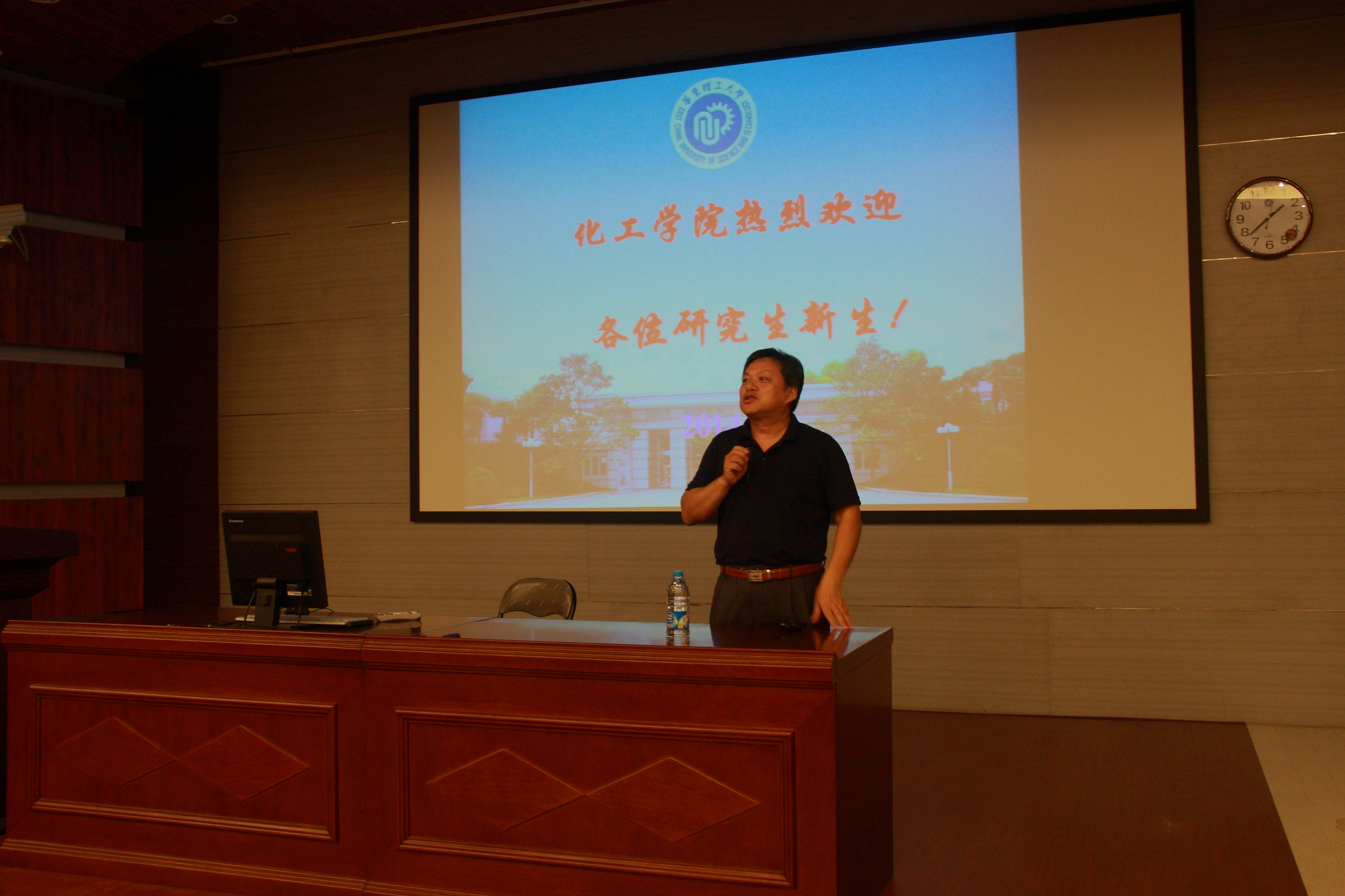 研究生现状等。李涛老师指出虽然研究生现状的主流是积极进取、勤奋刻苦,但也存在不善沟通、功利性强等问题,他告诫同学们要把科学研究作为第一要务,突出诚实守信的精神,并提醒同学们遇到问题要多与老师和同学们沟通,及时解决。随后,研究生辅导员张曙慧老师、庞祎晔老师和于靖老师分别就新生关心的课程学习阶段须知、户口迁移和档案管理以及如何尽快融入研究生的生活和学习等问题为大家讲解。