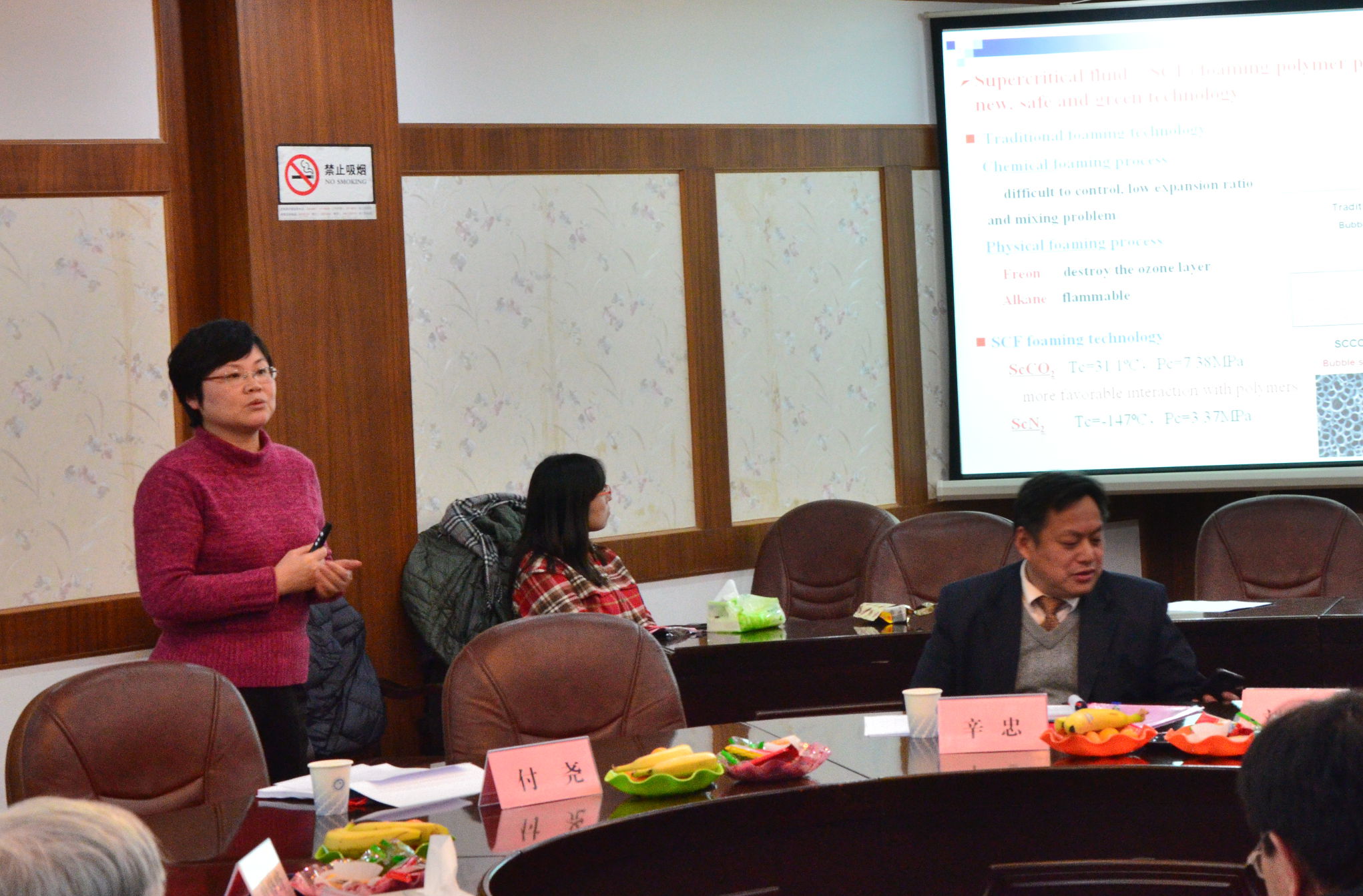 会上,涂善东副校长致欢迎词,介绍了学校近年来国家级、省部级科研基地的发展情况,并向与会委员颁发学术委员会聘书。重点实验室主任辛忠教授做实验室规划工作报告,汇报了实验室科研规划、人才队伍等方面情况,并介绍了实验室发展思路。实验室赵玲教授、刘柏平教授分别做了“CO2发泡聚合物复合材料过程中的多尺度传递行为”和“聚烯烃产品工程-实验与多尺度模拟研究进展”的学术报告。