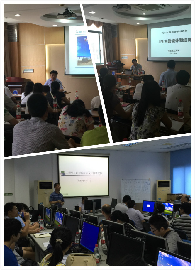 工程设计研究院有限公司等单位的设计专家,对学员开展化工设计系统知识培训。培训内容设置饱满充实,从工程项目的立项、可研报告、初步设计、施工图设计等介绍,到车间设备布置以及工厂厂区总图布置,从设计过程中的PFD、PID软件应用到工程项目中的安全、环保和技术经济评价,内容全面、新颖并联系实际,极大地吸引了培训学员的参与热情。在讲座后期设置的提问讨论环节,学员与专家互动热烈。