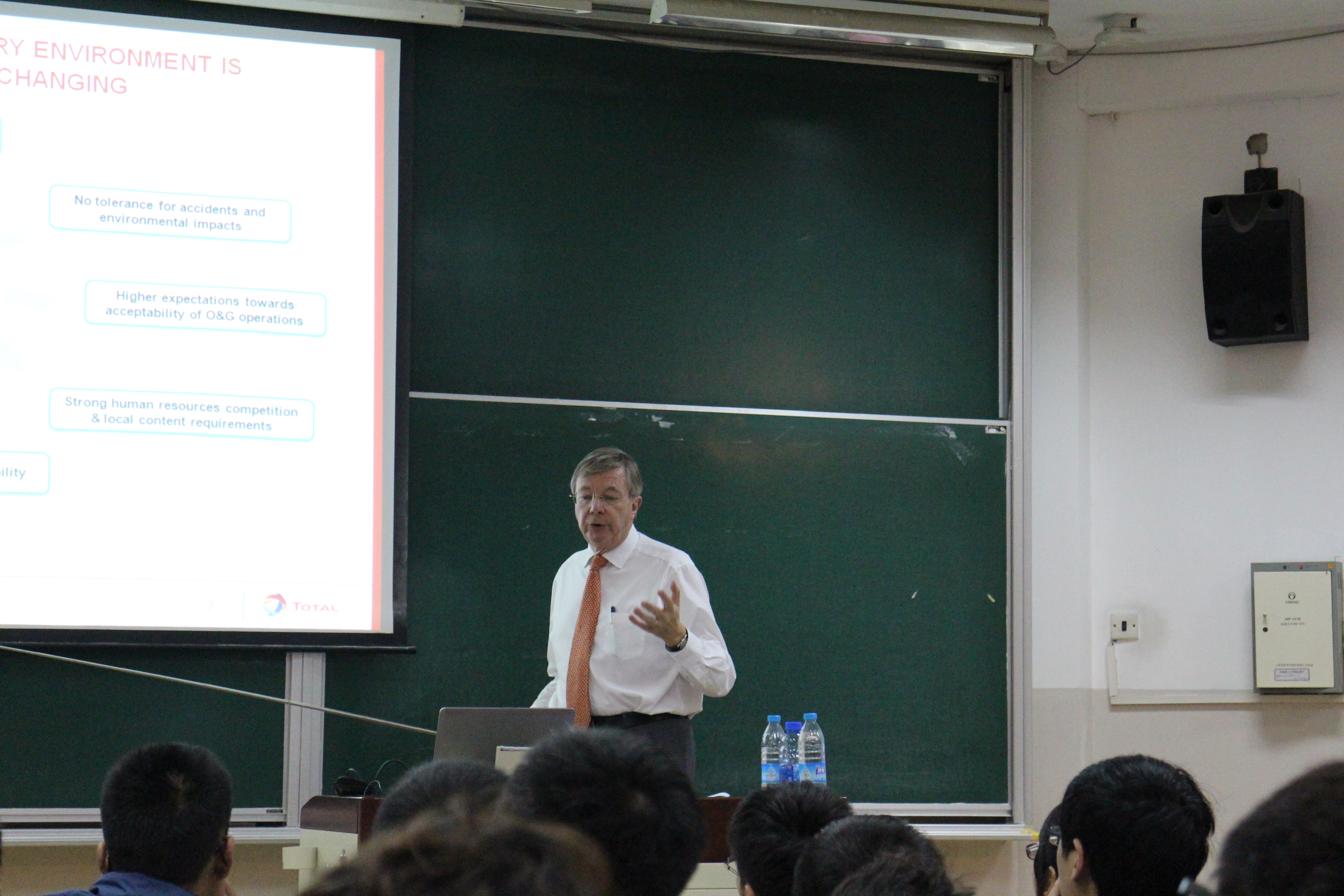 在最后一天的讲座中,教授和同学讨论了关于如何改善温室效应的互动讨论,让同学们对于三天的讲座内容有个整体的应用。同学们纷纷表示这样的学习乐在其中,同样道达尔的教授也感受到了色情片