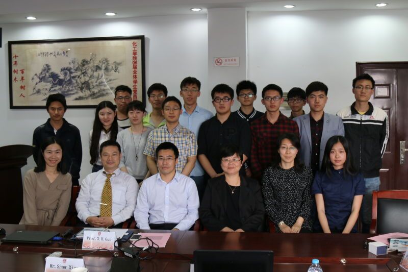 的师资队伍、人才培养、科学研究、国际交流等方面的情况。AIChE企划师Shaw Xiao先生针对AIChE组织的基本情况、教育资源、学术及学生活动等情况进行了详细的介绍,重点强调了AIChE的学生活动对化工人才培养的推动作用、化工职业的未来之路、化工行业的发展遇到的问题和前景。
