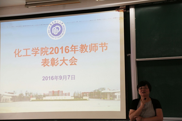方波副院长宣读表彰“化工之星”、“三大期刊”论文作者的决定,并对近一年内在科学研究、人才计划、教学管理工作中取得突破的教师进行了表彰。刘殿华副院长表彰了2015-2016年研究生“优秀任课教师”、“优秀博士学位论文指导教师”、“优秀硕士学位论文指导教师”;李涛书记宣读表彰了2015-2016学年“优秀班导师”的决定;赵玲院长表彰了“伯乐奖”获得者郭旭虹教授,并希望全院教师共同参与培养并推荐人才。