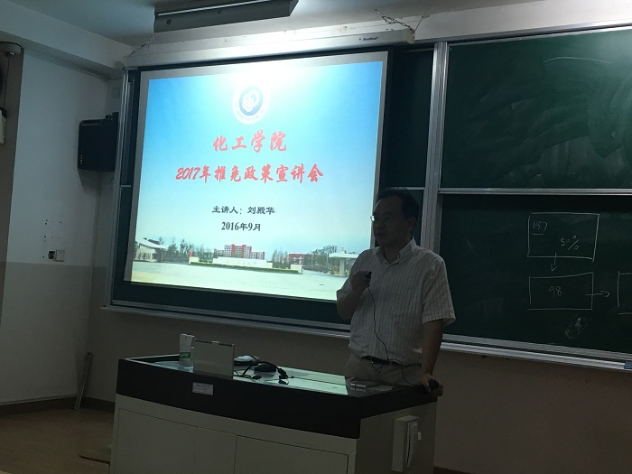 会上,赵双良老师向同学们详细介绍了我院2017年免试研究生推荐政策及本次推免工作的日程安排,并以化工专业为例,介绍了候选人名额以及面试成绩的计算方法等,确保同学们对政策做到充分理解。此外,赵老师着重强调了取消免试推荐资格的多种情况,告诫同学们一定要谨慎对待。
