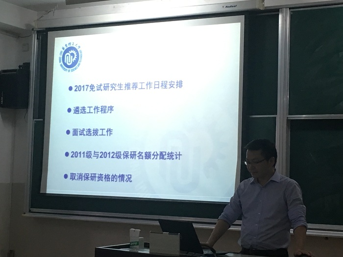 为保证2017年推荐面试研究生选拔工作顺利开展,学院在开学第一周分别举办了推免政策宣讲会及各系所情况介绍会,为保研的学生提供一个认知政策,获取导师和研究方向的信息渠道。