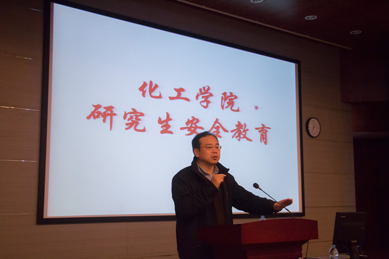 副院长刘殿华老师主讲。刘老师从事故案例分析、实验室安全知识与实验室注意事项三方面展开进行。