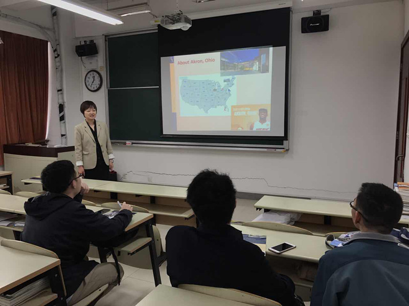 ,在奉贤校区为本科生做了一场关于阿克伦大学交流项目的宣讲会,并于宣讲会后与色情片