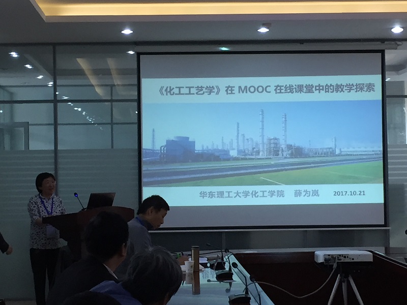 化工类专业人才培养质量,10月20日下午,我院化学工艺学教研组一行三人在组长薛为岚老师带领下赴中国石油大学参加了2017年度“全国化学工艺学课程教学研讨会”。薛老师在会议上做了题为“《化工工艺学》在MOOC在线课堂中的教学探索”报告,为各相关高校推进MOOC教育教学建设方面起到了很好的引领示范作用,取得了良好的效果。