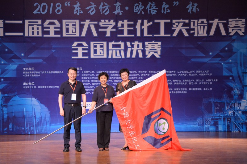 辛忠副校长总结致辞,希望参赛师生能把中国高等教育实践知识与经验传播出去,为未来的化工职业生涯奠定基础。最后,冯亚青主任委员主持了赛旗移交仪式,确定大连理工大学为下一届大赛承办单位。