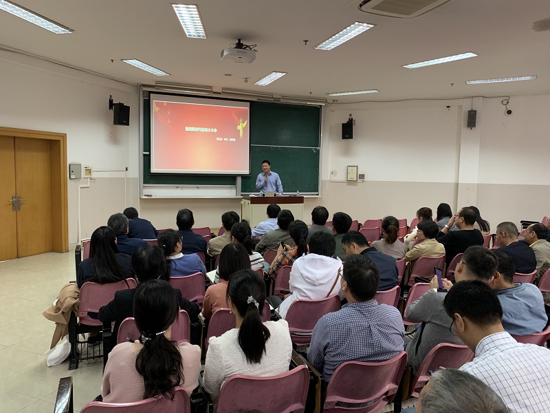 会上,邱卫东以党的十九大报告为切入点,提到中国已经进入了新时代,具有重要的历史内涵和深远的历史意义,要从三个方面进行解读:一是把握历史方位,目前我国已经是世界第二大经济体,对世界经济增长的贡献日益加大;二是认清斗争本质,面对来自国内外的一切政治、经济、文化意识形态等各方面的困难和挑战,我们要不畏艰难,充分认识这场伟大斗争的长期性和复杂性,自觉践行“四个伟大”:进行伟大斗争、建设伟大工程、推进伟大事业、实现伟大梦想,不断取得新胜利;三是自觉有所作为,邱卫东立足教师身份,与色情片
