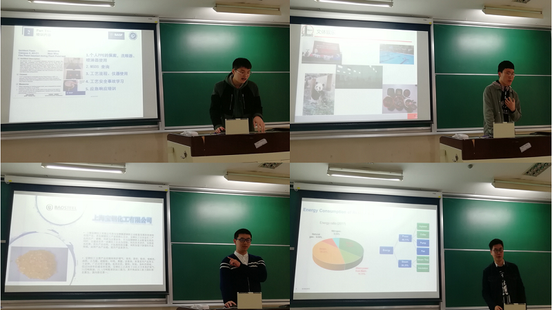 首先,于靖老师介绍了学院基地的整体情况、基地实践的基本要求,特别强调实践期间安全第一的原则。葛从晓针对实习过程的整体流程、注意事项作了详细的讲解。随后,中石化上海工程有限公司、巴斯夫有限公司、上海石油化工研究院、上海华谊集团公司技术研究院、宝武炭材料科技有限公司各基地的优秀学生负责人分别从基地的历史背景、团队建设、实践内容、成果展示、实践感悟等几个方面介绍了基地情况。获得巴斯夫直通PASS卡的优秀实践代表曹忠波也讲述了个人实习的点点滴滴,干货满满。