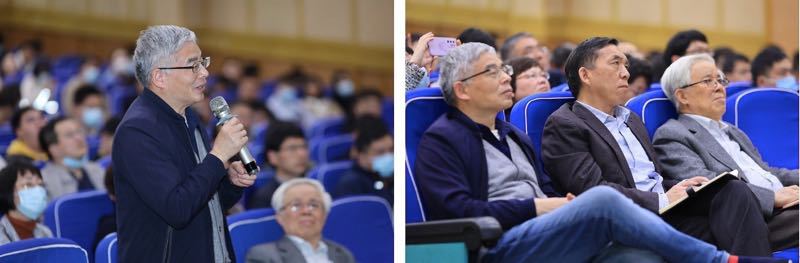 党课结束后,在场师生与何鸣元院士进行了热烈的交流与讨论。着眼超临界技术应用、二氧化碳化工及工程、模块式与可移动反应器等尖端领域,何鸣元院士鼓励青年师生要坚持“实践、认识、再实践、再认识”的不断反复,将科研志向与为祖国繁荣发展紧密结合,不断推动化工领域绿色发展。