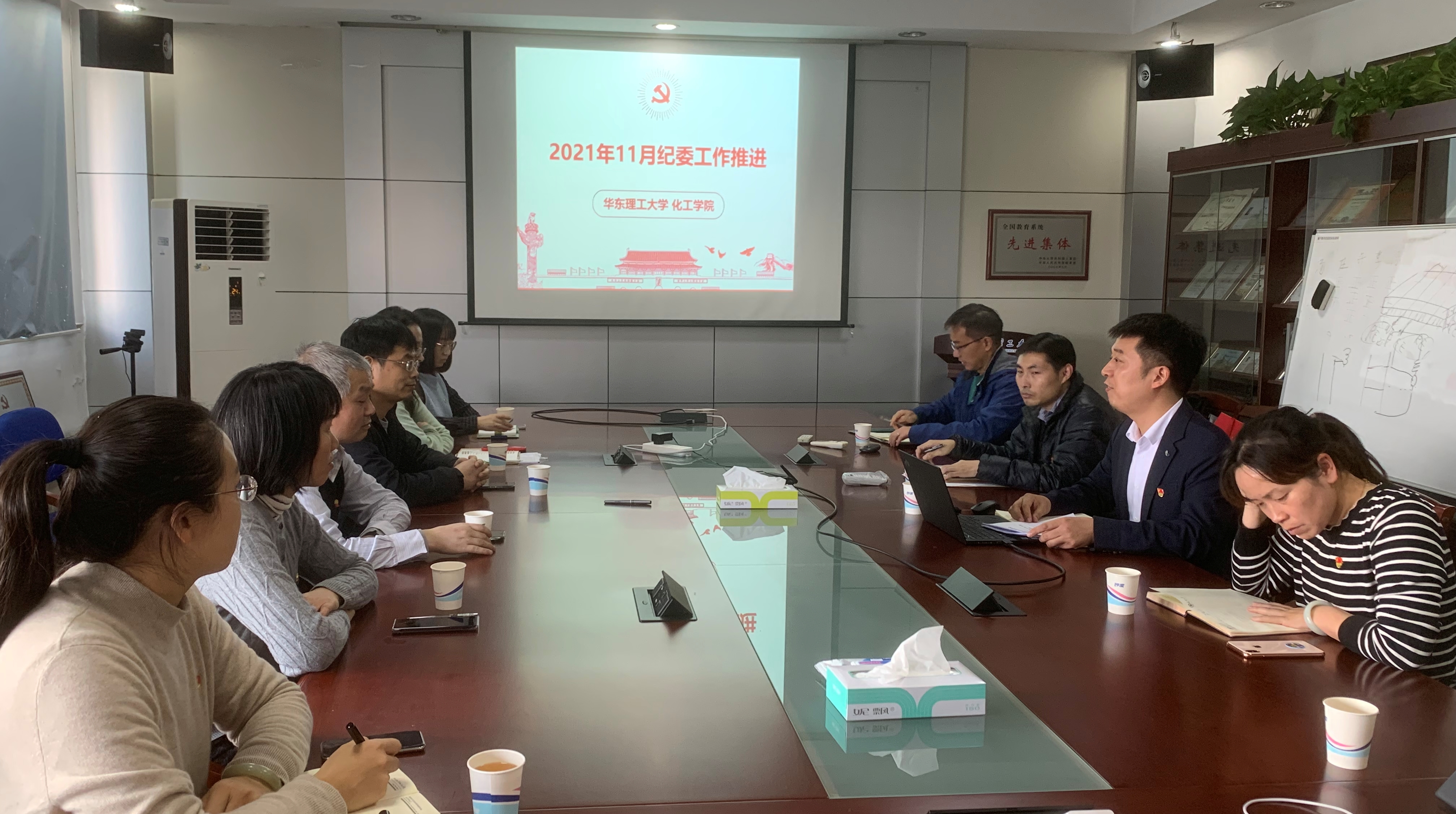 段学志带领大家共同学习了党的十九届六中全会精神、杨晓渡在《人民日报》署名文章《充分发挥全面从严治党的政治引领和政治保障作用》、党的宝贵历史经验之“坚持统一战线”等内容,传达了学校纪委近期工作提示和相关文件精神,并通报了关于色情片