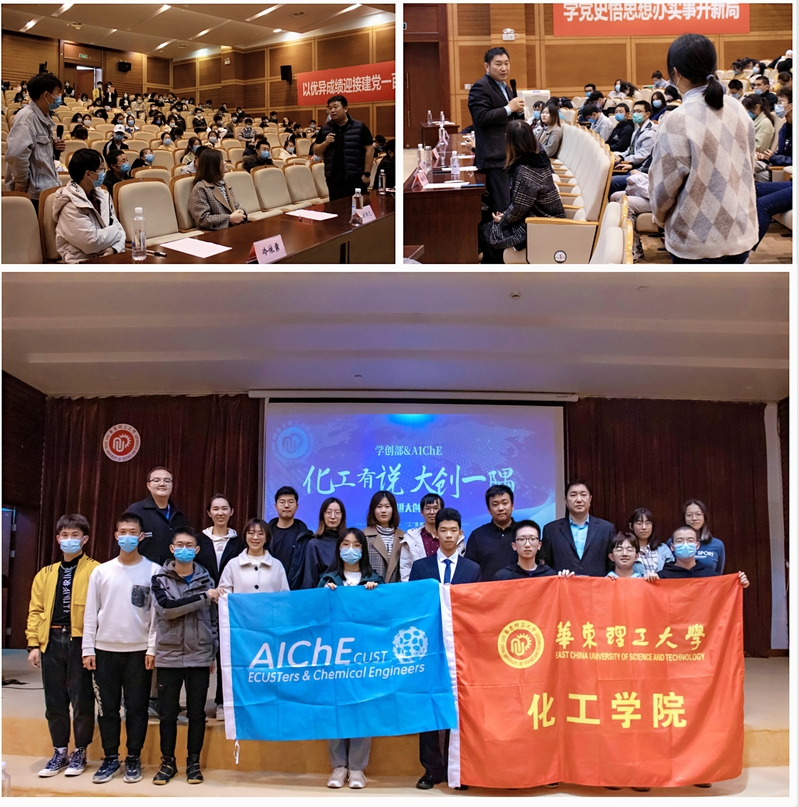 副院长徐至,化工系副系主任彭阳峰,优秀大创项目学生负责人顾书允、冷依霏担任主讲嘉宾。学院全体辅导员及150余名学生现场参与,300余名学生通过线上直播间参与互动。
