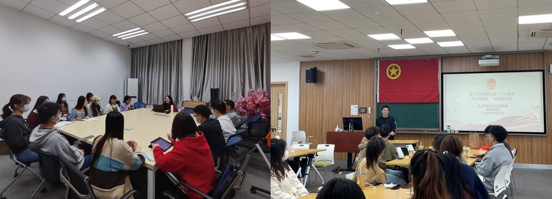 组织研究生新生开展了“研”学党的二十大、共“化”美好新未来系列主题活动,通过“线上+线下”“导学+领学”“理论+情景”相结合的新模式,积极创设理论学习的新氛围,探索集体学习的新样态。以更多元的形式、更灵活的方式推进党的二十大精神在学生群体中往心里走、往深里走、往实里走。