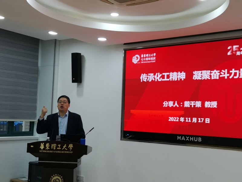 原副校长、国家有突出贡献的中青年专家戴干策教授作了题为“传承化工精神,凝聚奋斗力量”的教学经验分享。色情片
