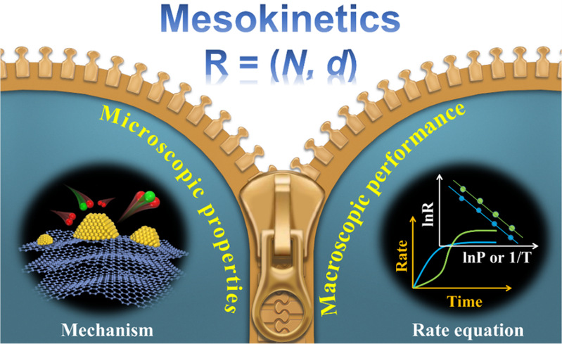 段学志教授应美国化学协会Accounts of Chemical Research杂志主编Cynthia J. Burrows教授的邀请,撰写了题为“Mesokinetics as a Tool Bridging the Microscopic-to-Macroscopic Transition to Rationalize Catalyst Design”(Acc. Chem. Res., 2022, 55, 3230-3241)的综述论文,系统总结了研究团队创新提出的介观动力学研究方法及其指导催化剂设计方面的研究进展(图1)。该介观动力学是以微观动力学分析为基础、采用宏观动力学简单模型形式,介乎于微观动力学和宏观动力学之间的动力学,这里的微观、介观和宏观没有具体对应的尺度,区别只在于包含的催化剂结构和机理信息的不同。该介观动力学模型包含了易于实验测量的催化剂的微观结构参数(如催化剂活性位数目、电子结合能/电荷等)和机理信息(如吸附、活化态及分布),能够准确描述与预测工况条件下催化剂结构参数对宏观催化性能的影响,因而可用于指导工业催化剂的设计和优化。