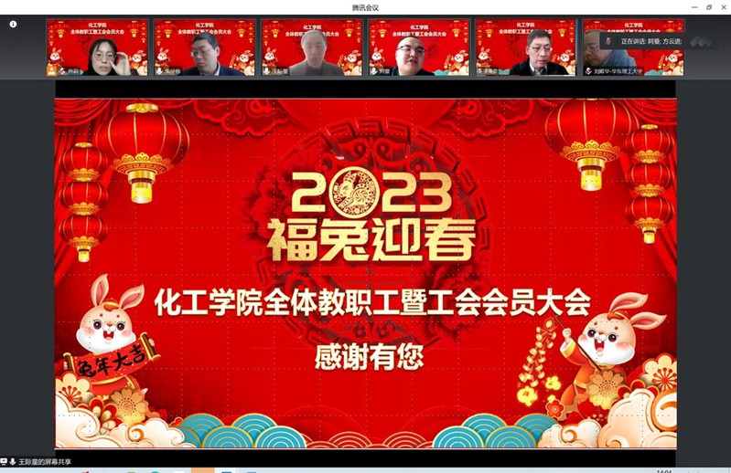 会议还安排了2022年加入工会大家庭新会员的介绍环节,十五位青年才俊为大家进行了热情洋溢的自我介绍,并为学院发展送上诚挚的祝福。最后,学院还特别邀请了兔年本命年的工会会员代表为全体教职工送上新春祝福。同时,大会开展了线上抽奖环节,气氛十分活跃。