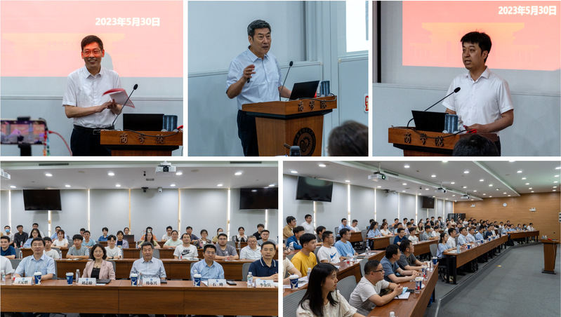 院长李春忠、党委副书记段学志主持。报告采用线上线下相结合的方式,600余名师生共同参与。