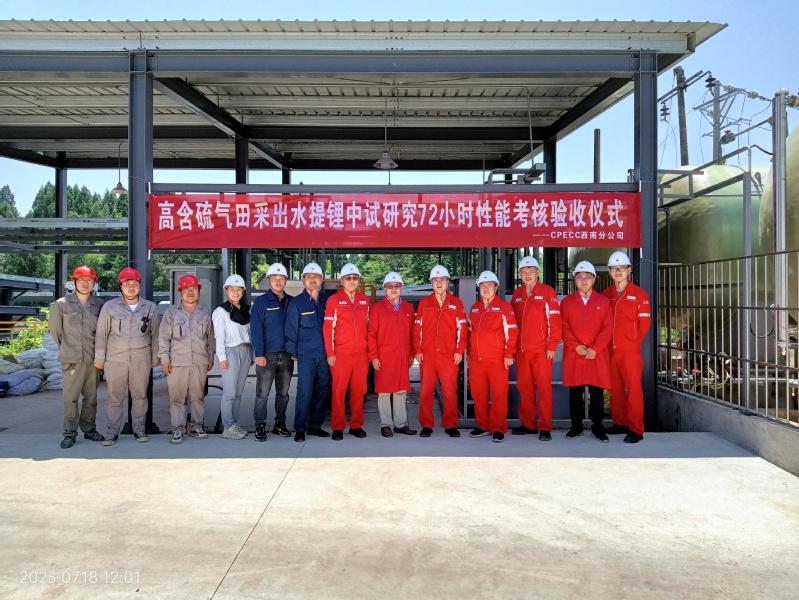 国家盐湖资源综合利用工程技术研究中心与CPECC西南分公司、中国石油西南油气田公司合作建设的高含硫气田水提锂工业化500m3/d示范性装置,实现了72个小时连续稳定达产达标运行,各项性能指标均达到设计要求,气田水日均处理量为510m3,碳酸锂产品纯度在99.2%-99.8%,标志着国内首套规模化气田水提锂装置通过性能考核验收,从调试试运行阶段转入到正式生产阶段。