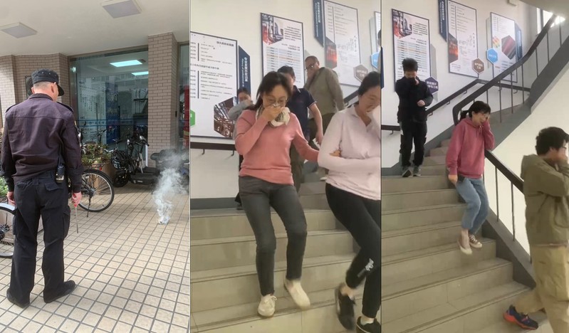 的师生普及了基础消防安全知识。下午两点,段凯洋宣布消防应急疏散演练正式开始,工作人员依照演习预案分别在实验12楼南侧和实验16楼南侧门口点燃烟饼,开始模拟火灾发生的场景,两栋实验楼也同时响起了消防报警铃声及语音提示。实验12楼及实验16楼的全体师生在34位楼层引导员的有序引导下,捂住口鼻,快速且有秩序地撤离到了安全区域。最后,段凯洋宣布2023色情片