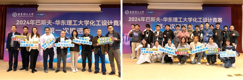 大会第一阶段,校企双方代表分别进行致辞。李宁作为企业代表介绍了巴斯夫公司中国区的基本概况,表达了巴斯夫公司对华理学子的期望,并预祝参赛学生取得好成绩。司忠业代表学校向巴斯夫表示衷心感谢,感谢巴斯夫对青年学子成长和本次大赛的大力支持。他指出,全国大学生化工设计竞赛是全国化工类专业级别最高、影响力最大、参赛高校最多的全国大学生赛事,有助于学校全面落实“卓越工程师教育培养计划”,有利于培养学生的创新能力素养。随后,巴斯夫企业代表和校方代表共同为参赛队员发放参赛包,参赛包由巴斯夫设计和捐赠。