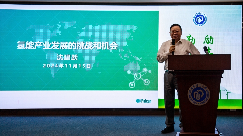 报告会后,沈建跃同与会师生就氢能产业发展的技术瓶颈、市场应用前景等问题进行了热烈而充分的交流,现场为师生答疑解惑、传经送宝。