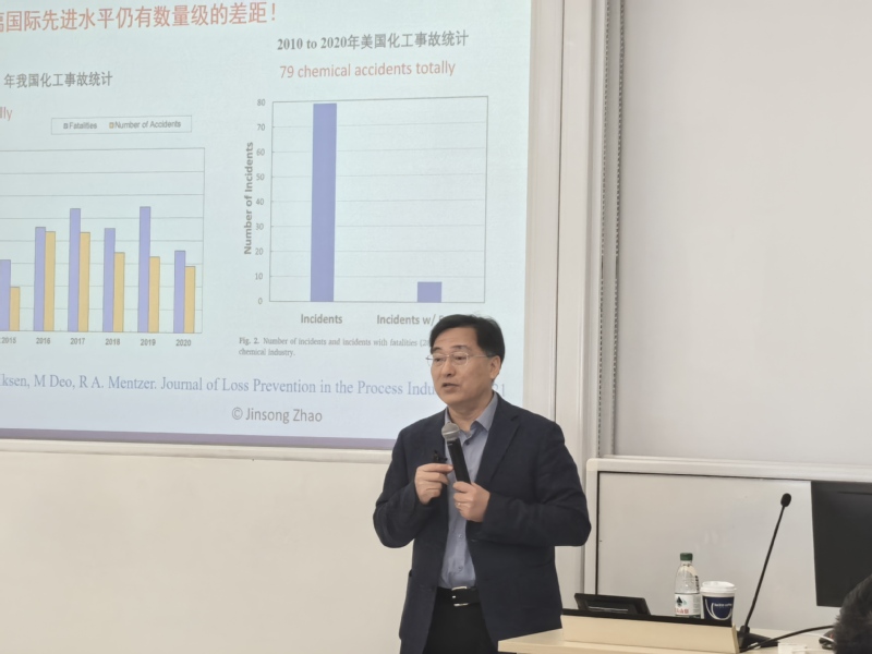 报告最后,赵劲松与在场师生进行了深入互动交流,逐一为大家解答了风险隐患排查、人工智能技术应用等相关的问题。本次讲座不仅强化了在座师生的安全工程伦理意识,还介绍了涉及人工智能技术的化工安全科技创新的最新发展,极大地扩展了师生们在该领域的视野。