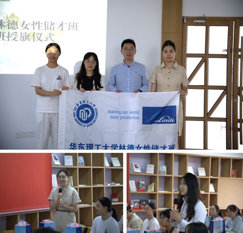 优秀学员代表隋想分享了在储才班的学习收获,感谢林德与华理精心构筑的专业成长平台。新学员代表邓晓宇表达了对未来学习的期待,表示将以坚韧与智慧的姿态,与全体学员共赴新征程。随后,孙莉与杨晨共同向新学员代表授予象征责任传承的储才班班旗。